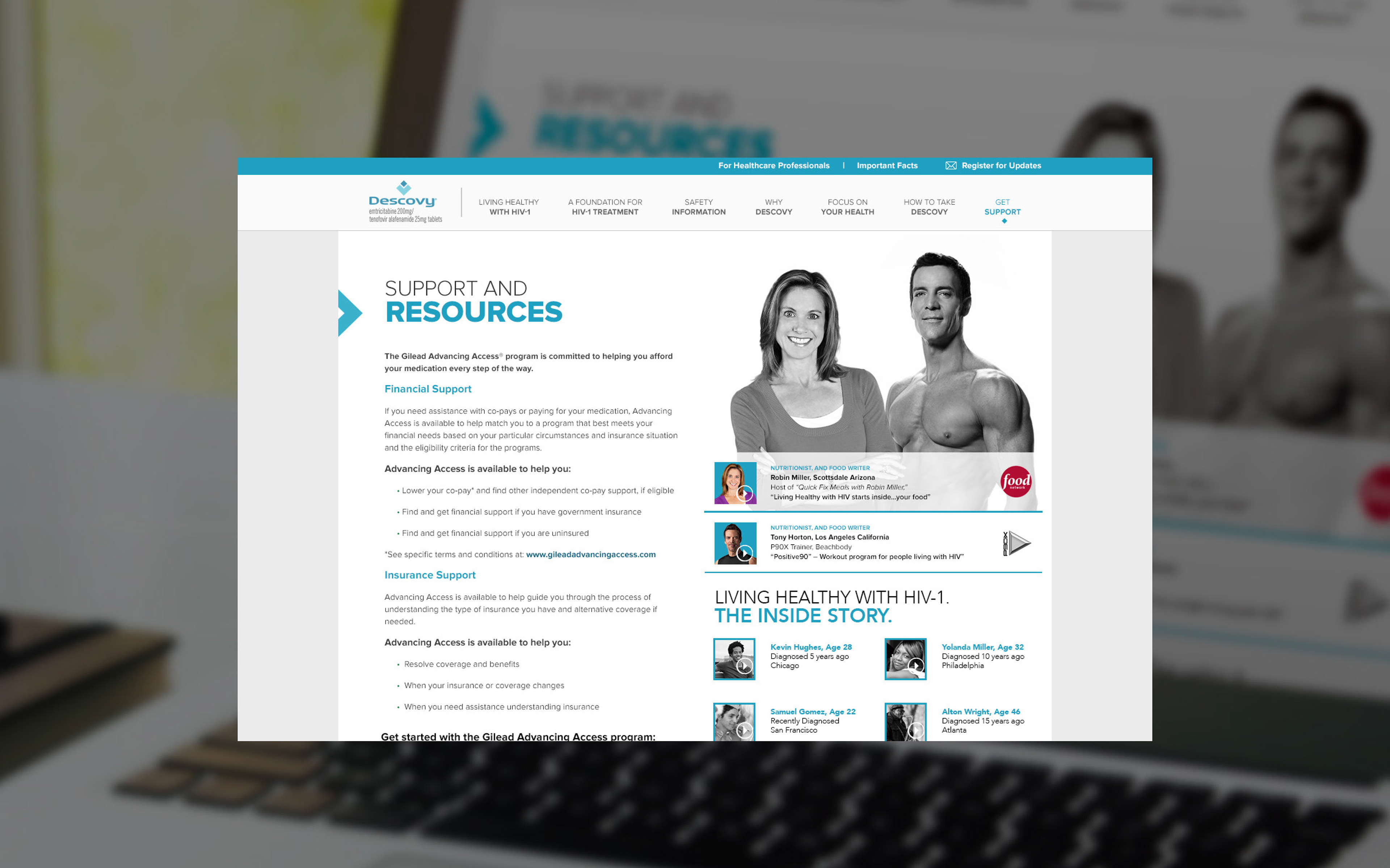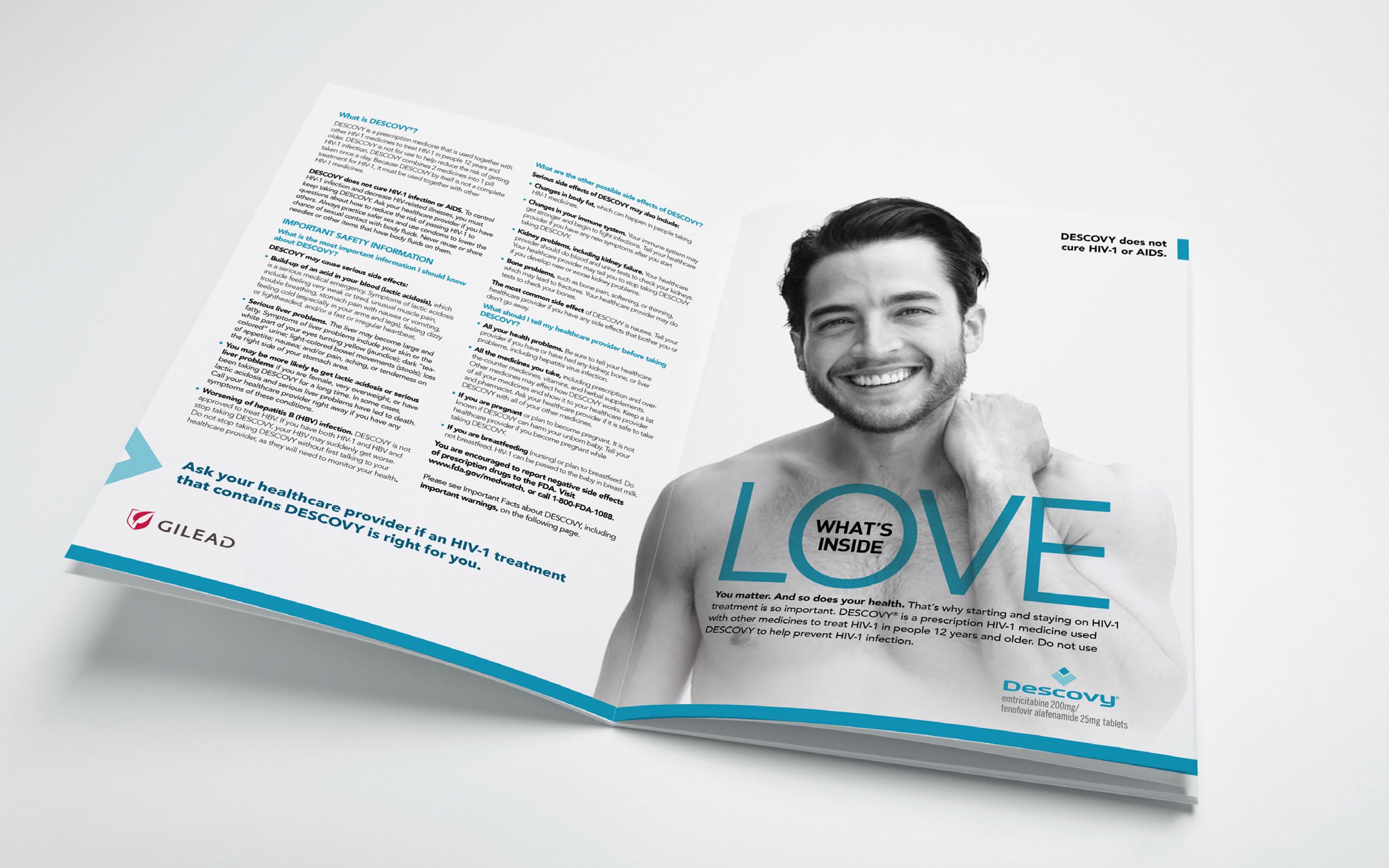 For the DESCOVY® product launch, I meticulously crafted the look and feel to ensure a compelling and engaging brand presence. I leveraged stylistic patient profiles, using diverse, authentic imagery and storytelling to resonate with the target audience while reinforcing the product’s benefits. By blending vibrant visuals, modern typography, and a fresh color palette, I developed a cohesive aesthetic that translated seamlessly across both printed and online marketing materials. These elements worked together to create an impactful, user-friendly experience that educated and engaged healthcare professionals and patients alike. My design approach enhanced brand recognition and set the stage for a successful, high-impact launch.