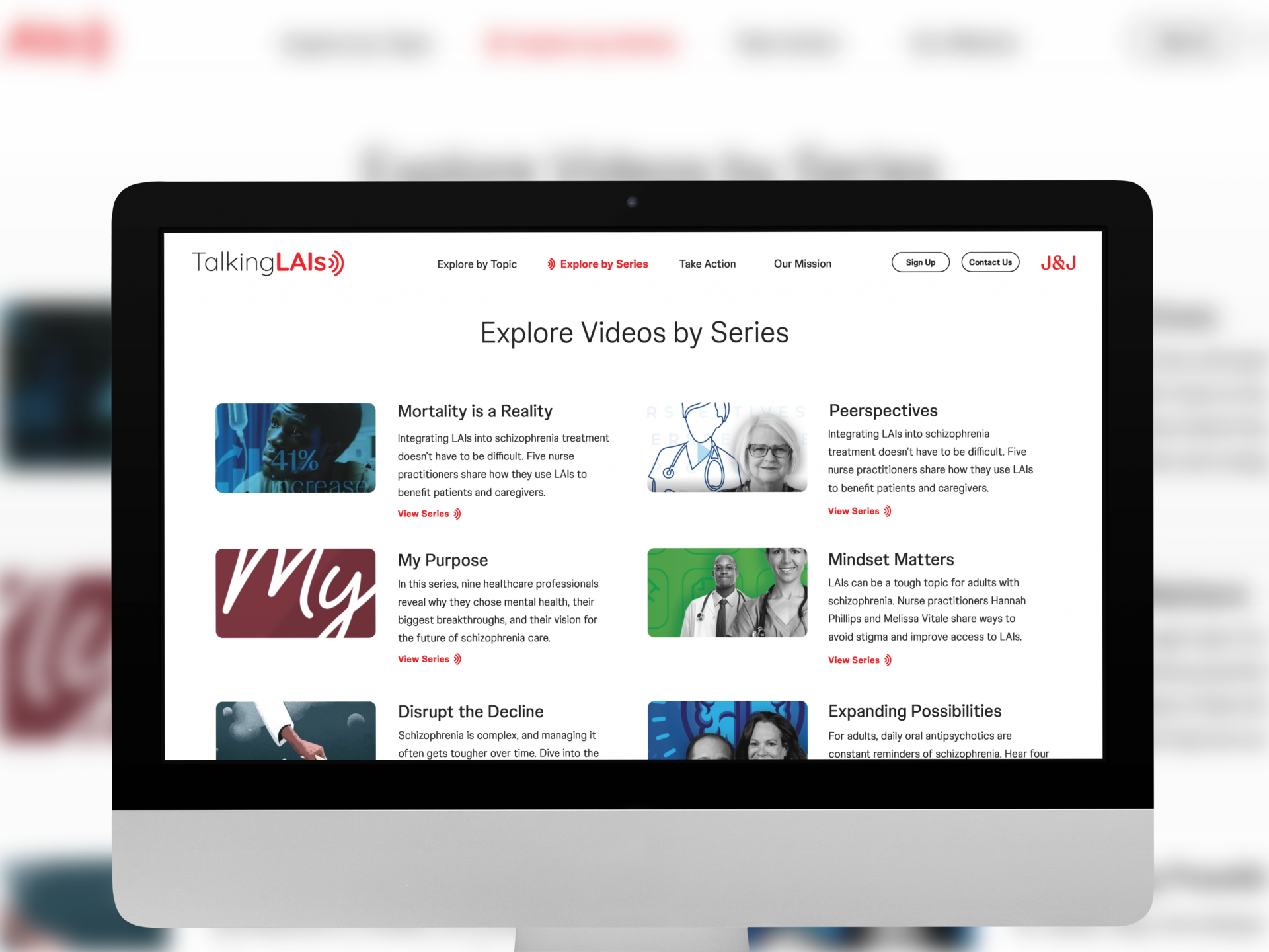 TalkingLAIs.com is dedicated to educating U.S. healthcare professionals about long-acting injectable (LAI) antipsychotics and their role in treating schizophrenia in adults. The website offers a variety of video series, including insights from thought leaders and peers on integrating LAIs into treatment plans. Additionally, the "My Purpose Series" features healthcare professionals reflecting on their careers in mental health, while the "Take Action" section offers resources to facilitate meaningful patient conversations.